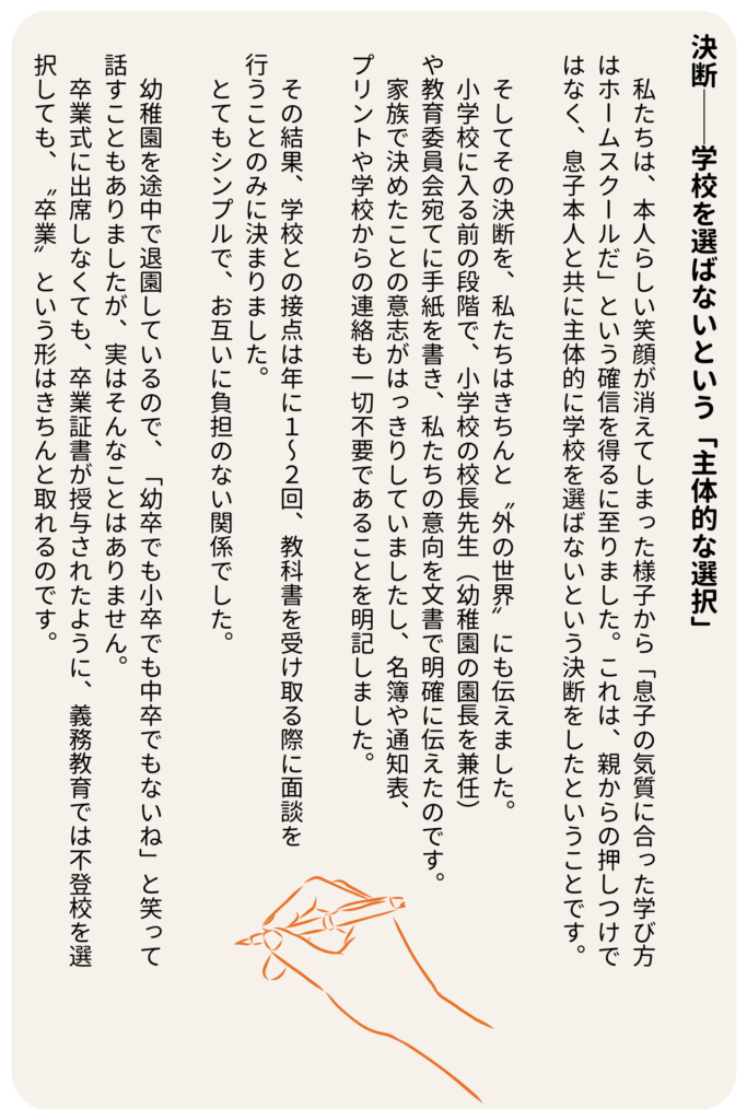 それでも卒業証書が授与されたように、 義務教育では不登校を選択しても、“卒業”という形はきちんと取れるのです。