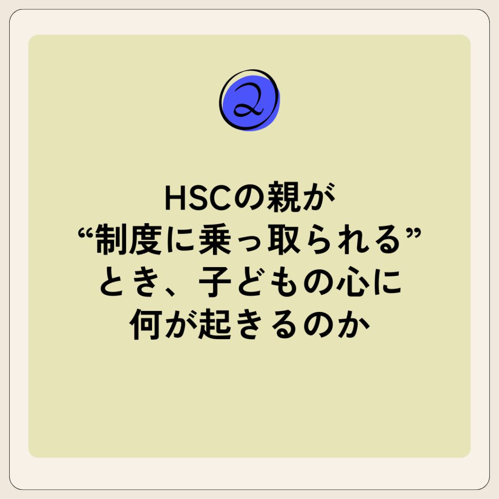 HSCの子育てで出会う悩みや行き詰まりの多くは、“問題” や “トラブル” ではなく、その子の内側からのサイン として現れます。
