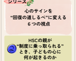 本記事は「心のサインを“回復の道しるべ”に変える6つの視点」シリーズの第2回です。シリーズ一覧は ▶(こちら) 教育制度と社会通念が「親の心を乗っ取る」瞬間 「明日には登園できるように」 「泣いても預けたほ […]